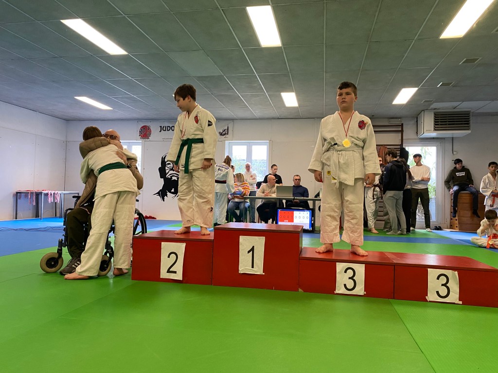Parmi ces coachs, un nom ressortait du lot, celui de Stefan Latorrata. Lui qui depuis des années se plie en quatre pour les petits loulous du JTN a dû s’éloigner du tapis depuis septembre pour combattre une grave maladie. Mais malgré ces difficultés, le papa de nos jeunes judokates Cléa et Aelia tenait à être présent pour cette occasion qui lui tient à cœur. Et nos jeunes lui ont bien rendu. Toutes et tous ont tenu à lui apporter leur soutien dans son combat.
